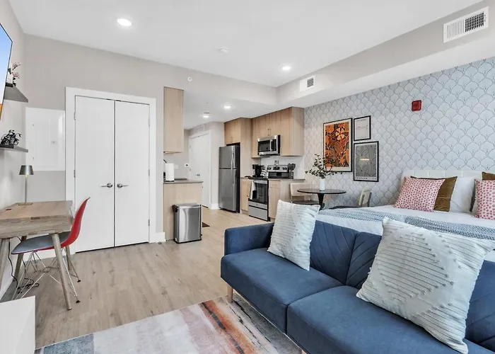 Nestled just a short five-minute stroll from the enchanting Spring Garden, the Floor To Ceiling Windows - Bridge Views - Studio offers an exquisite blend of sophistication and comfort. This contemporary gem is ideally situated a mere 5 kilometers from the vibrant heart of Philadelphia, making it the perfect haven for both leisure and business travelers alike. As you embark on your Philadelphia adventure, you'll find the Floor To Ceiling Windows - Bridge Views - Studio not only provides a tranquil retreat but also convenient access to the city's attractions. With efficient transportation options nearby, exploring the rich culture and history of Philadelphia becomes a breeze.